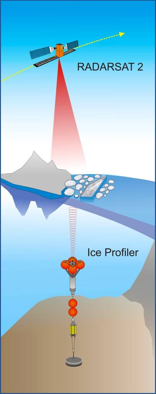 ASL's Ice Profiler along with Acoustic Doppler Current Profilers will provide validation data and opportunities for improvement in the analysis and interpretation of the SAR imagery. In effect, this project will combine the view of the ice canopy from below (Ice Profiler) with the view from above (Radarsat-2 high resolution quad-polarized data), and generate enhanced ice information products. Using simulated data for Radarsat Constellation Mission compact polarimetry beam mode, the operational utility of such products will also be assessed.