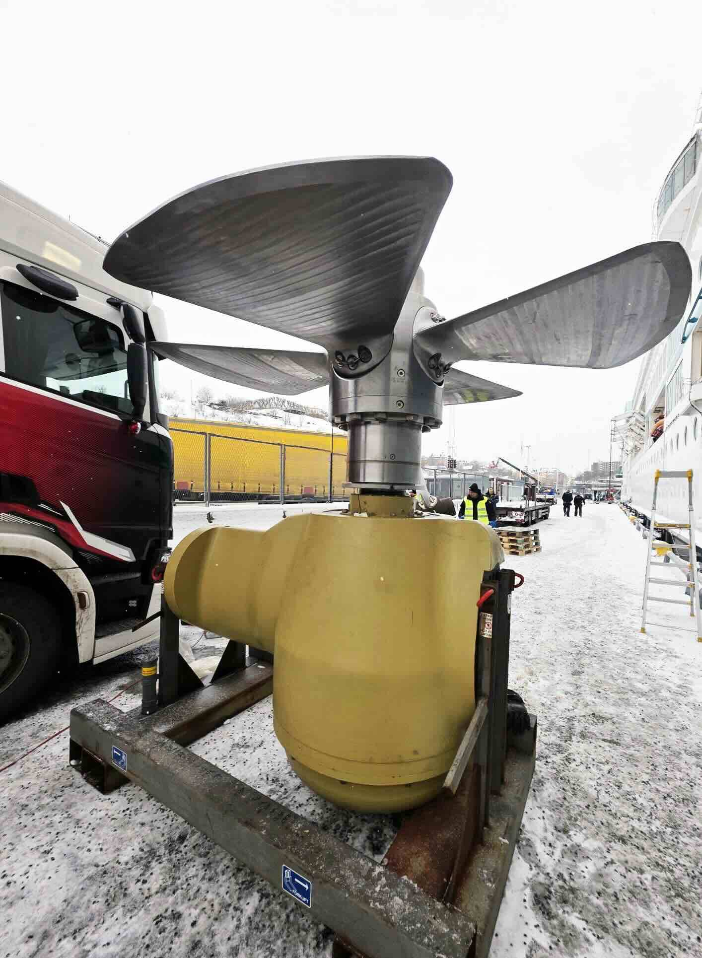 As the thruster was fully assembled and prepared, it was installed in its entirety without the need to create a dry environment in the tunnel as is required when the blades are fitted separately. Once the new thruster was positioned in the tunnel, all connections were secured, the grids were reinstalled, and final checks confirmed everything was ready for operation.