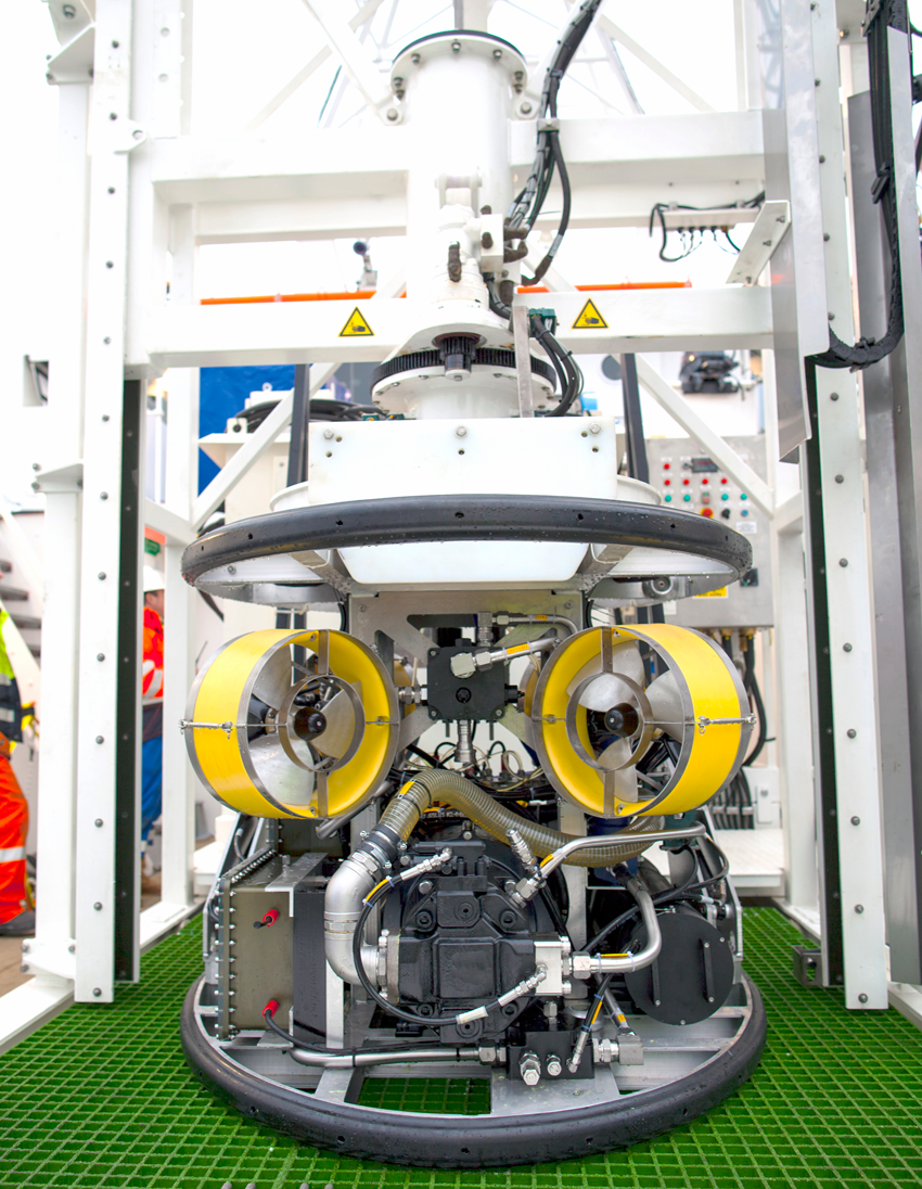 The d’ROP is initially designed for operation from the new semi-SWATHE research vessel, Bibby Athena - and will be deployed through the vessel moonpool. The d’ROP relies upon the support vessel for forward propulsion, a heave-compensated winch and combined LARS for its vertical control - while the onboard vehicle thrusters maintain heading and fine adjustments to the lateral position. This way, the d’ROP maintains a fixed heading and altitude in relation to a survey line, cable or pipeline with great control and stability when compared to traditional mid-size ROV systems.