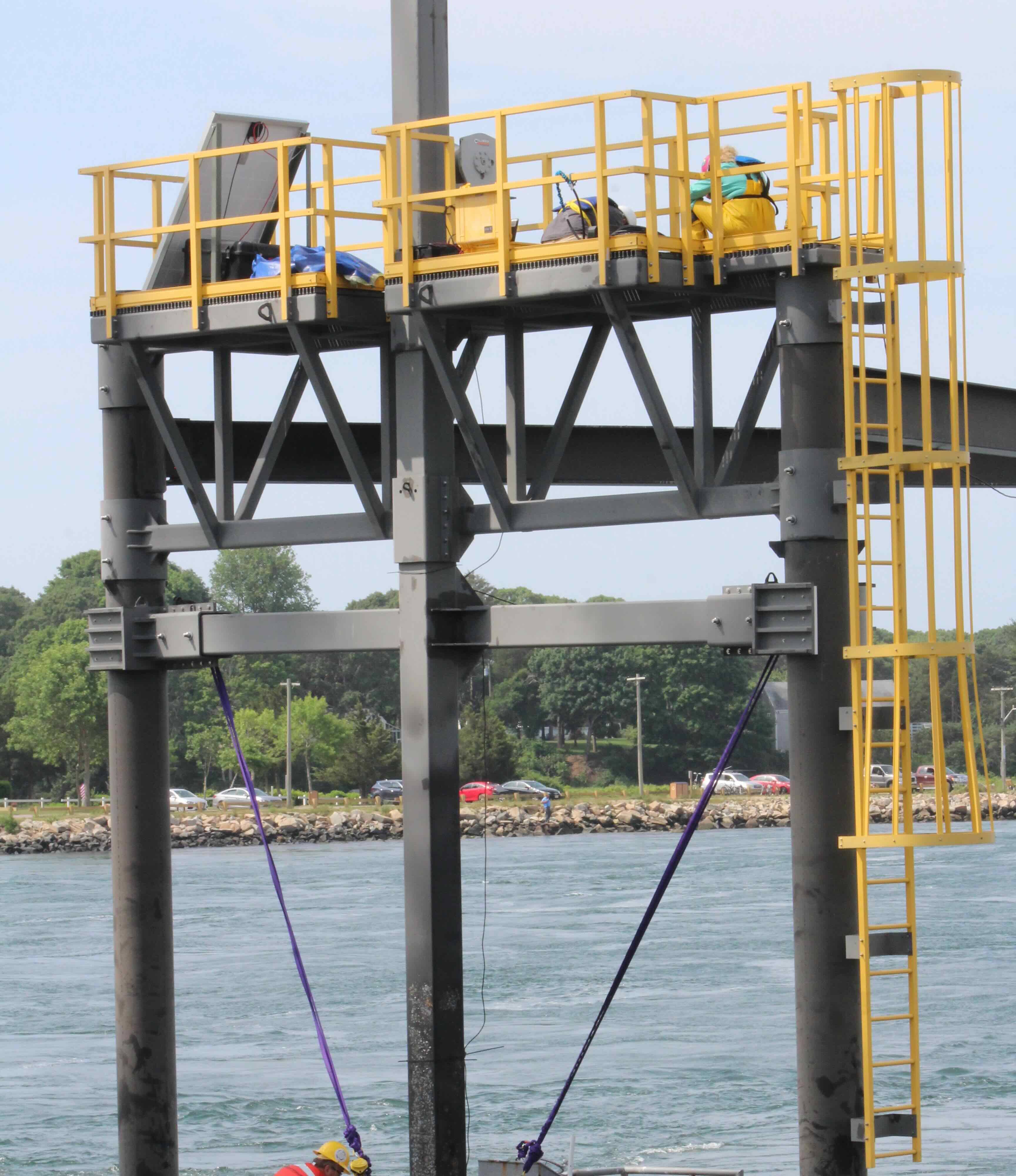 The Bourne Tidal Test Site, located in the Cape Cod Canal, is a platform built specifically for testing tidal energy devices and marine sensors in fast-moving water. The site allows engineers and researchers to see how their technology performs in strong tidal currents, while still being close to shore and easy to access.