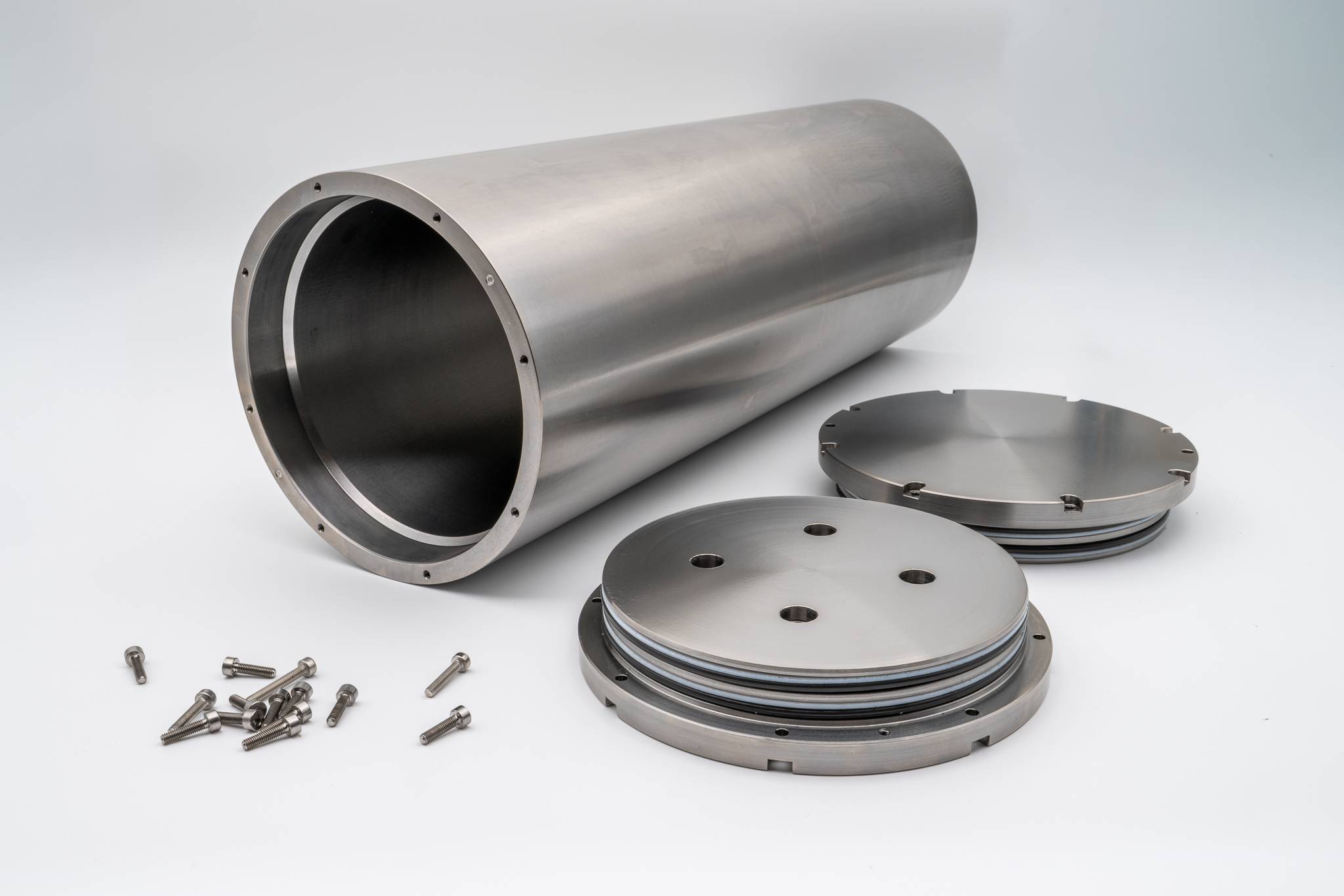A major U.S. space technology company approached OceanTools with detailed specifications, and they designed and built a highly intricate pressure vessel to meet their requirements. Made from Grade 5 Titanium, it measures 520mm in diameter, around a meter in length, and weighs nearly 400kg.