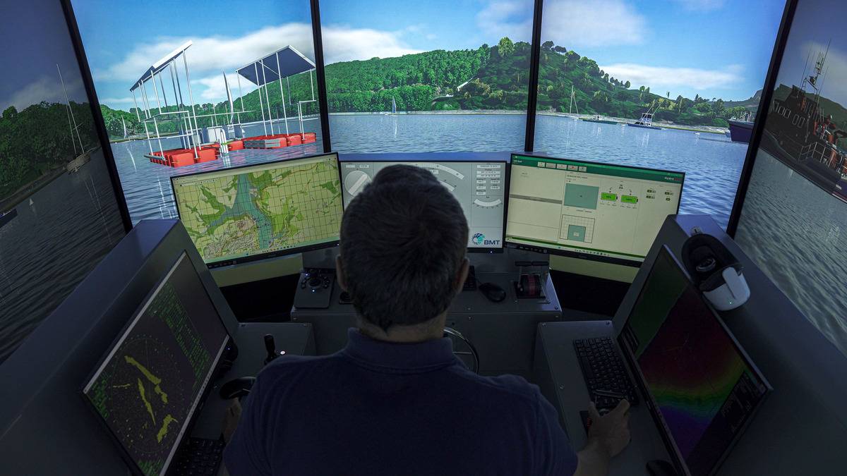 Funded by Innovate UK’s Marine & Maritime Launchpad, the project integrates a solar-powered docking and replenishment station, an immersive Remote Operations Centre (ROC) using BMT’s REMBRANDT simulator, and upgrades to South Devon College’s training vessel, USV Dart.