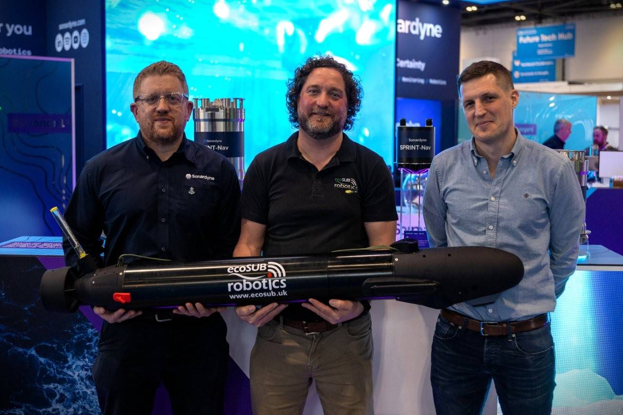 (L-R) Aidan Thorn, Marine Robotics Business Development Manager, at Sonardyne, Iain Vincent, Director & General Manager, at ecoSUB Robotics, and Anders Wikmar, Survey and Technical Director, at Njord Survey. © Sonardyne