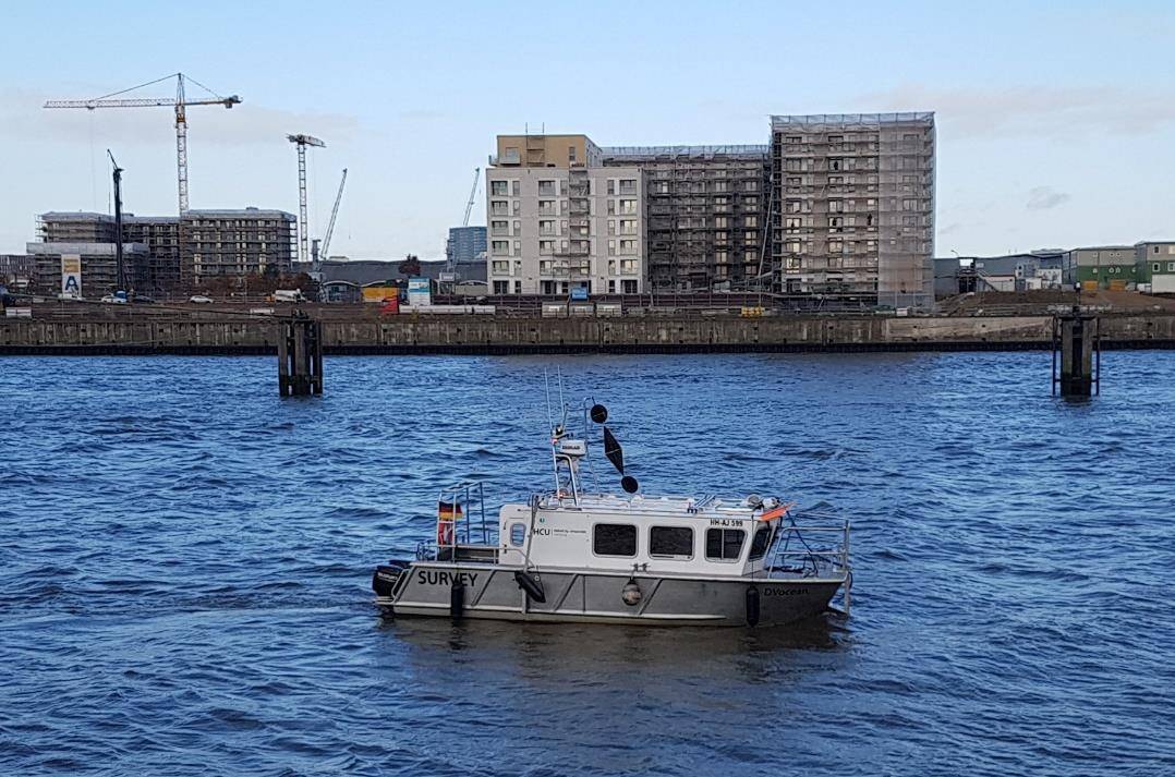 Hydrography is a popular specialization in HafenCity University’s two-year Master of Science Geodesy and Geoinformatics course, which is taught in the English language with international students making up three quarters of those attending. The 8-meter-long, 2.65-meter-wide DVocean survey boat is an essential component of the course, as well as various marine education and research programs at the university.