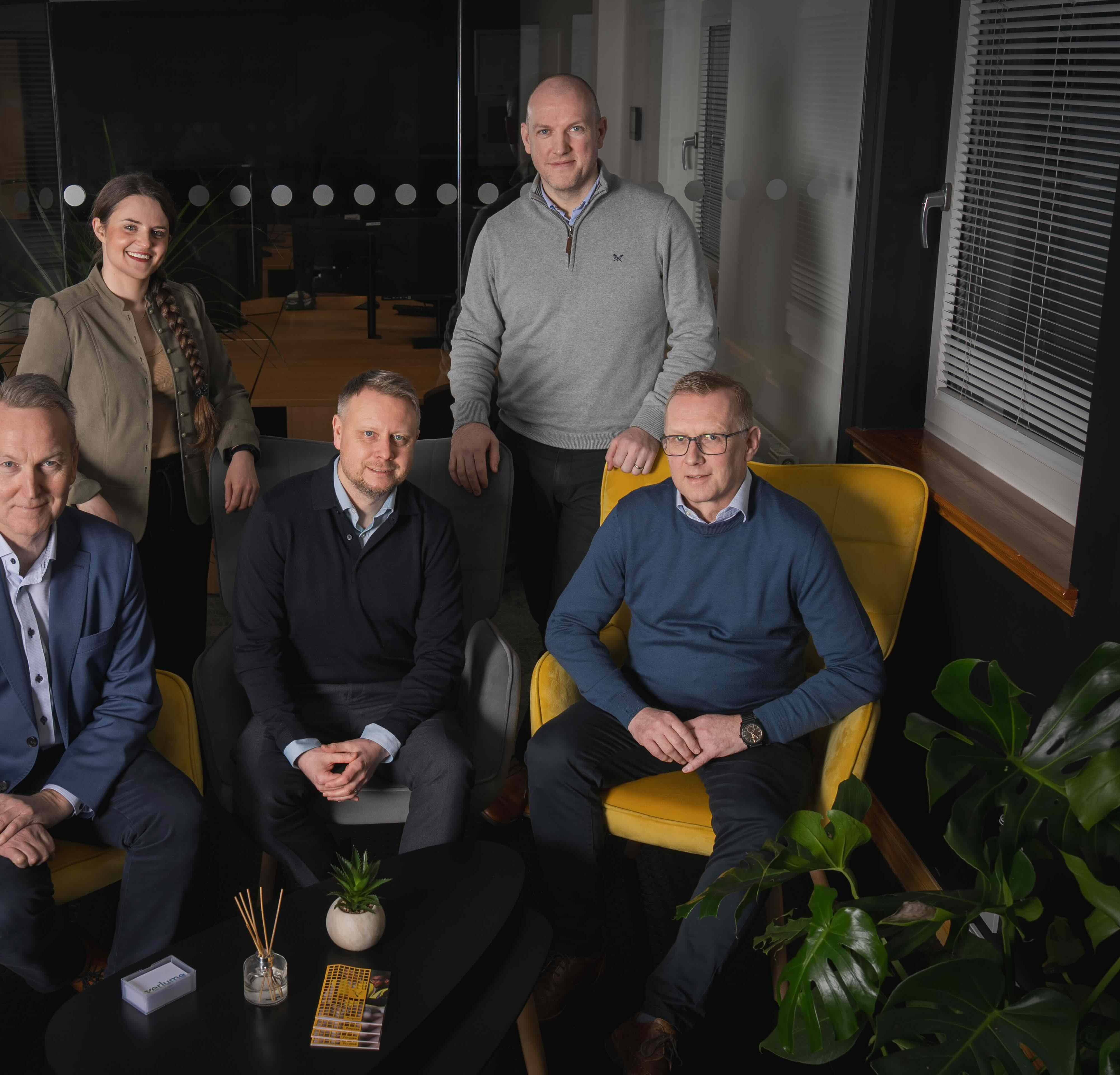L-R: David Clark (CEO), Graceann Robertson (Sales & Marketing Manager), Richard Knox (Founder-CTO), Robert Heron (Operations & Engineering Director), Alan Shanks (Chief Financial Officer). © Verlume